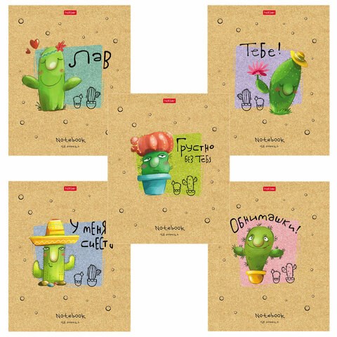 Тетрадь А5 48 л. HATBER скоба, клетка, матовая ламинация, "Мой друг Кактус" (5 видов в спайке), 48Т5лВ1