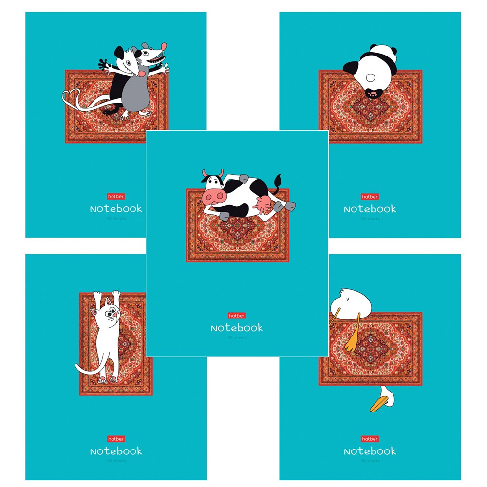 Тетрадь А5 48 л., HATBER скоба, клетка, обложка картон, "На ковре" (микс в спайке), 088375, 48Т5В1