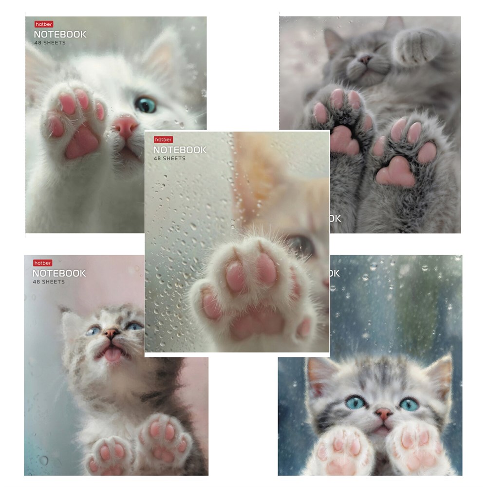 Тетрадь А5 48 л., HATBER скоба, клетка, обложка картон, "Розовые лапки" (микс в спайке), 090370, 48Т5В1