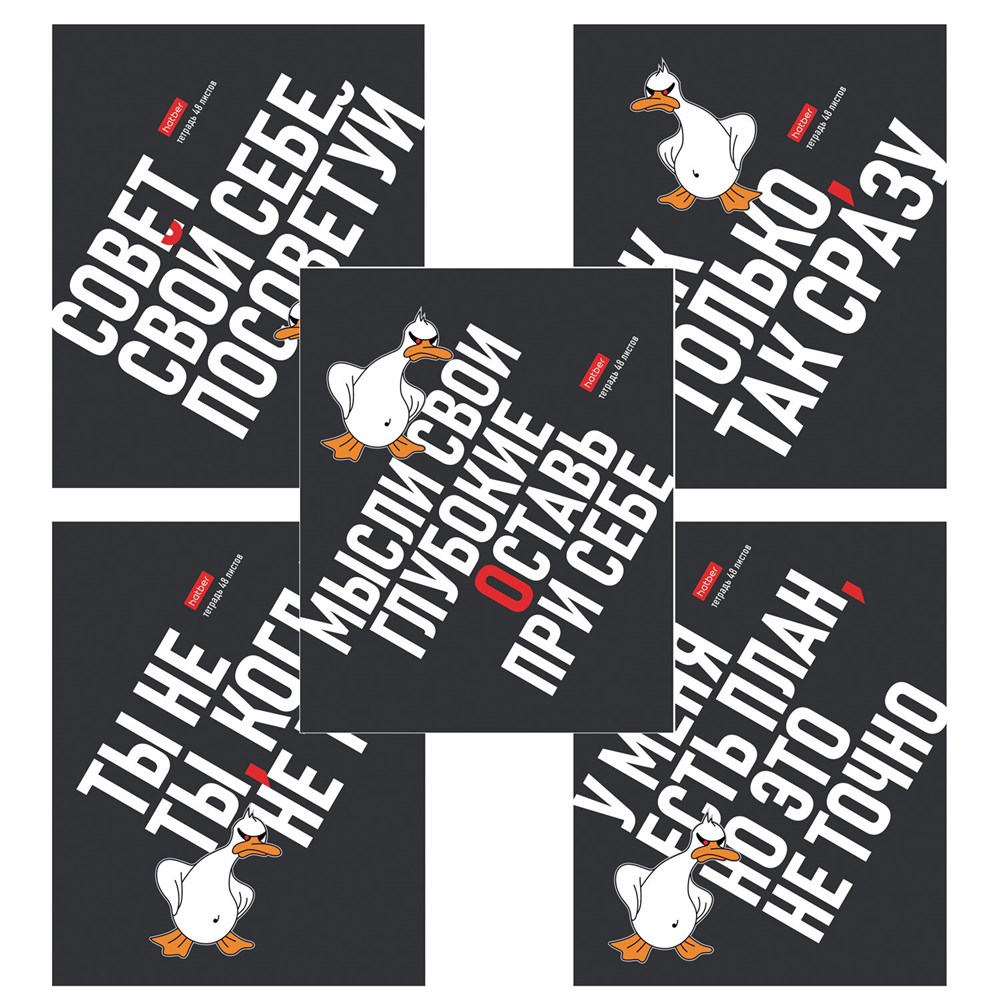 Тетрадь А5 48 л., HATBER скоба, клетка, выборочный лак, "Гусь умный" (микс в спайке), 078540, 48Т5вмВ1