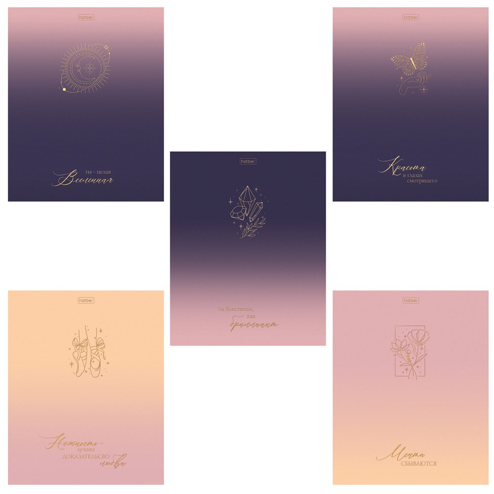 Тетрадь А5 48л. HATBER скоба, клетка, матовая ламинация, 3D фольга, Золотые моменты (, 48Т5лофВ1