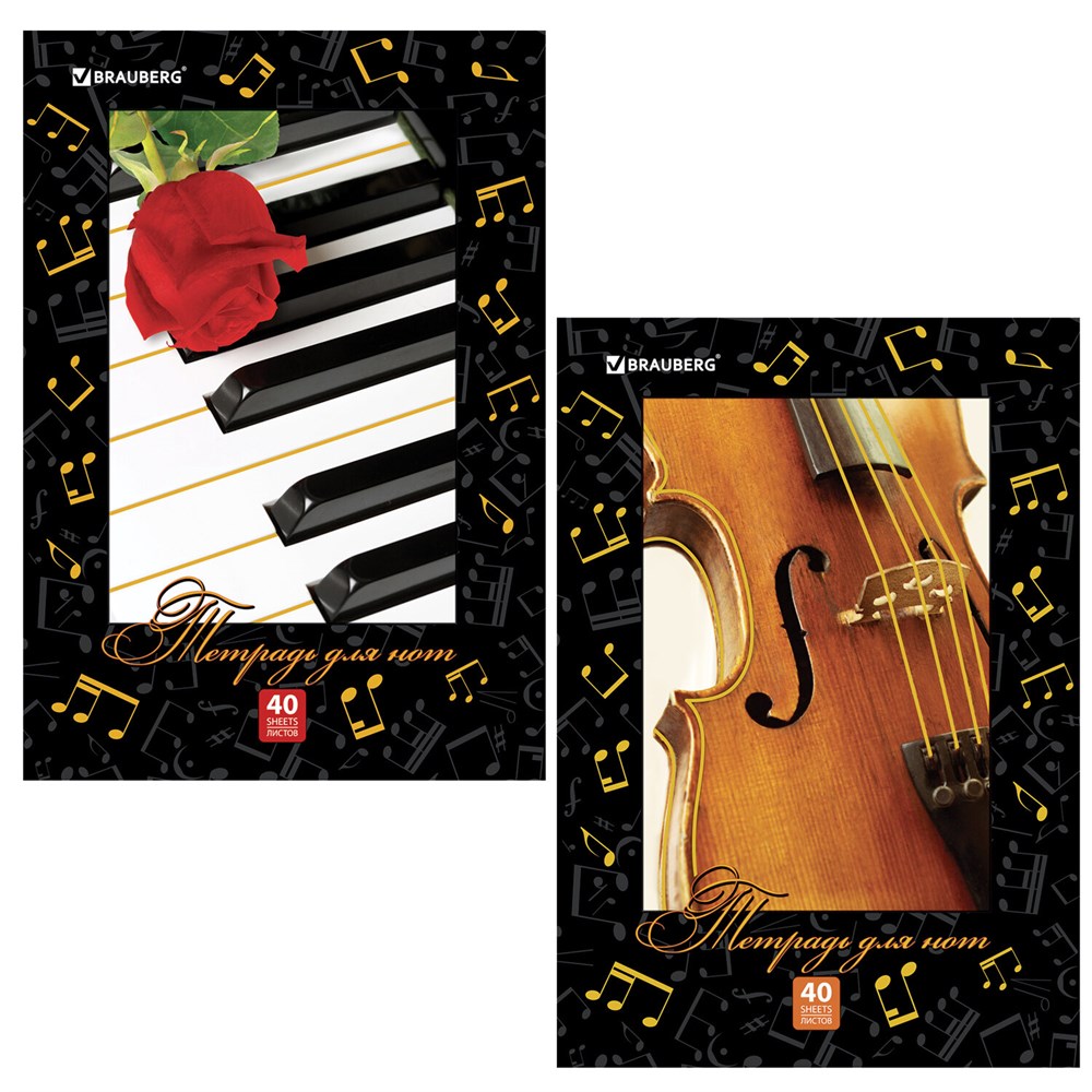 Тетрадь для нот А4, 40 л., BRAUBERG, обложка мелованный картон, вертикальная, на скобе, BRAUBERG, "Магия музыки", 125418