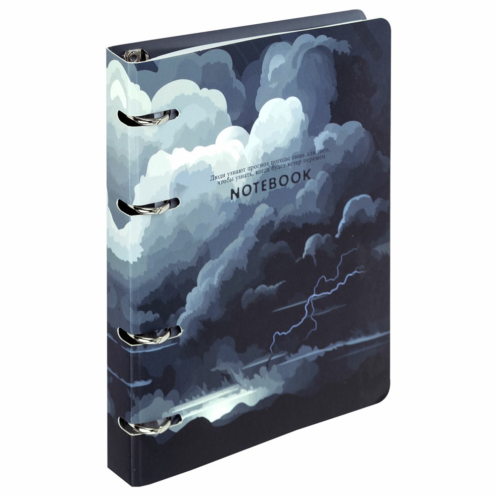 Тетрадь на кольцах А5 160х212 мм, 120 листов, картон, матовая ламинация, клетка, BRAUBERG, "Clouds", 404726