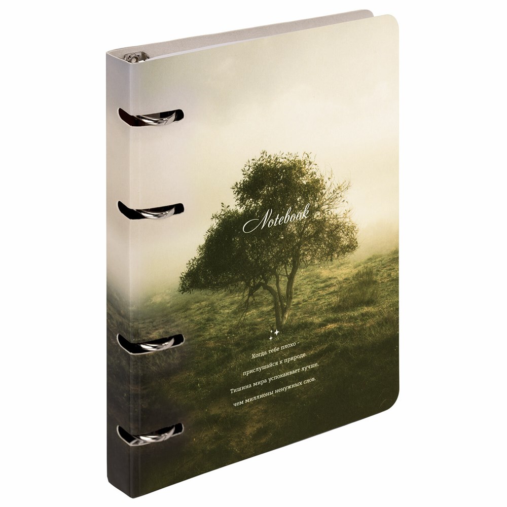 Тетрадь на кольцах А5 160х212 мм, 120 листов, картон, матовая ламинация, клетка, BRAUBERG, "Nature", 404728