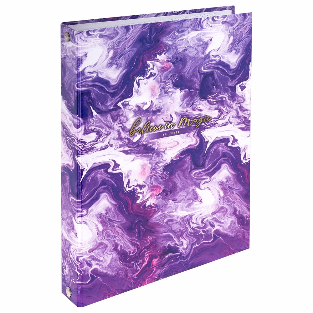 Снабжена кольцевым механизмом с 4 кольцами для подшивки сменных блоков, что позволит брать на учебу/работу всего одну тетрадь с возможностью добавлять и менять листы.