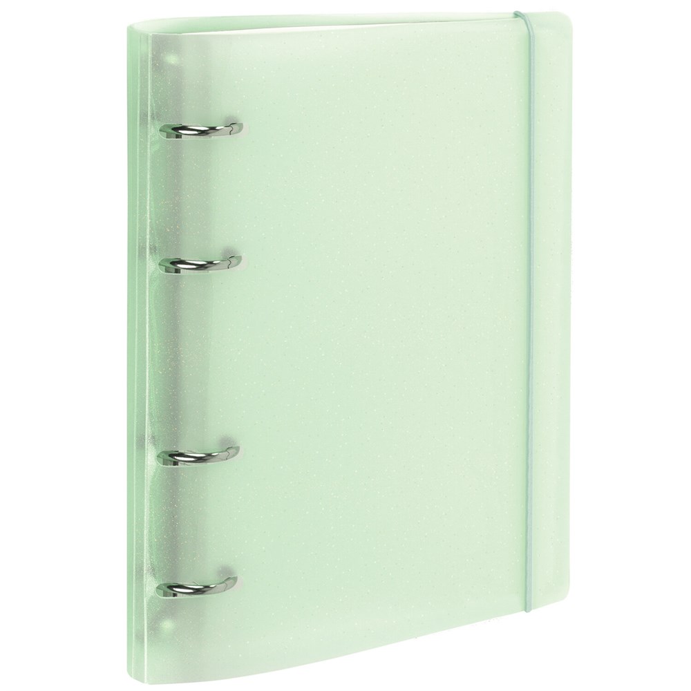 Тетрадь на кольцах А5 175х220 мм, 120 л., пластик с блестками, с резинкой и разделителями, BRAUBERG, Зеленый, 404632
