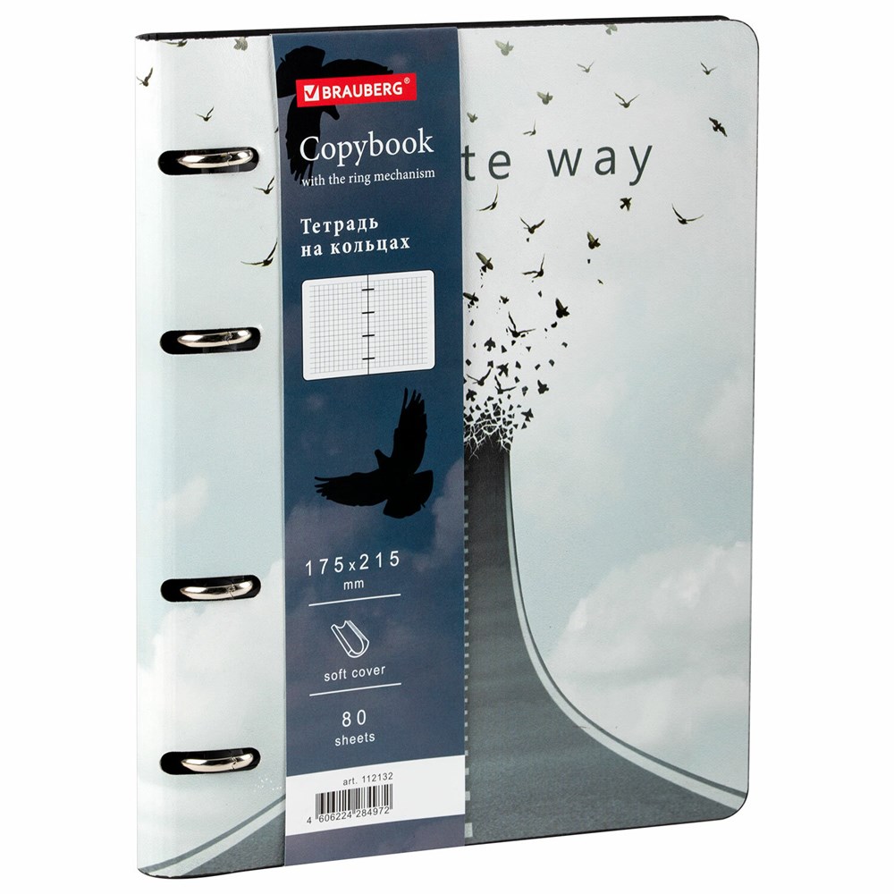 Тетрадь на кольцах А5 (180х220 мм), 80 листов, под кожу, клетка, BRAUBERG VISTA, Infinite way, 112132
