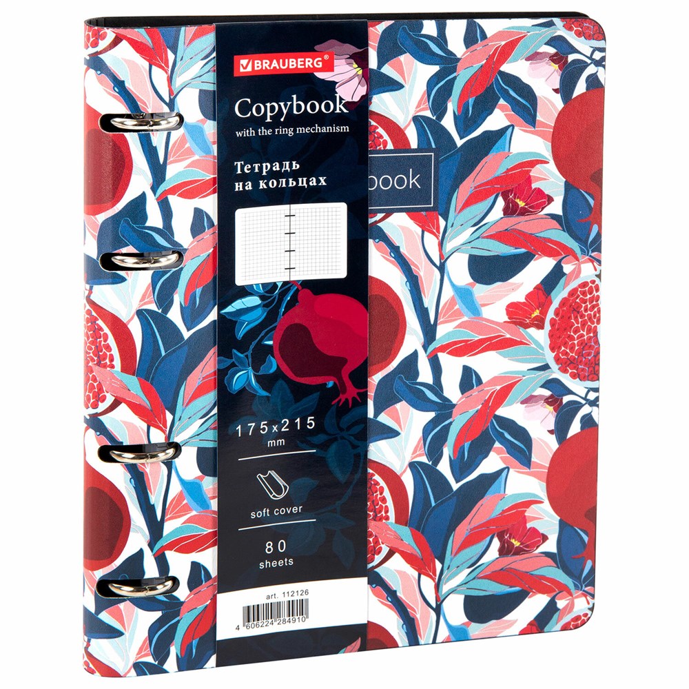 Тетрадь на кольцах А5 (180х220 мм), 80 листов, под кожу, клетка, BRAUBERG VISTA, Pomegranate, 112126