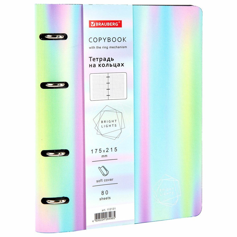 Тетрадь на кольцах BRAUBERG - это идеальный вариант для тех, кто ценит практичные и элегантные вещи.Блок состоит из 80 листов офсетной бумаги белого цвета плотностью 70 г/м2. Кольцевой механизм с 4-мя кольцами позволяет пользоваться сменным блоком в 120 листов. Линовка - клетка с полями. Мягкая интегральная обложка с тиснением фольгой и вырубкой под кольца выполнена из износоустойчивого материала с текстурой под гладкую кожу. Формат А5 удобно носить в рюкзаке/сумке, что позволит брать на учебу/работу всего одну тетрадь с возможностью добавлять и менять листы.