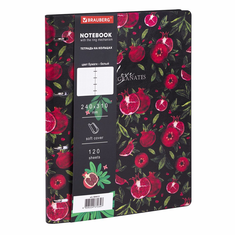 Тетрадь на кольцах БОЛЬШАЯ А4 (240х310 мм), 120 л., под кожу, BRAUBERG VISTA, "Гранаты", 404513