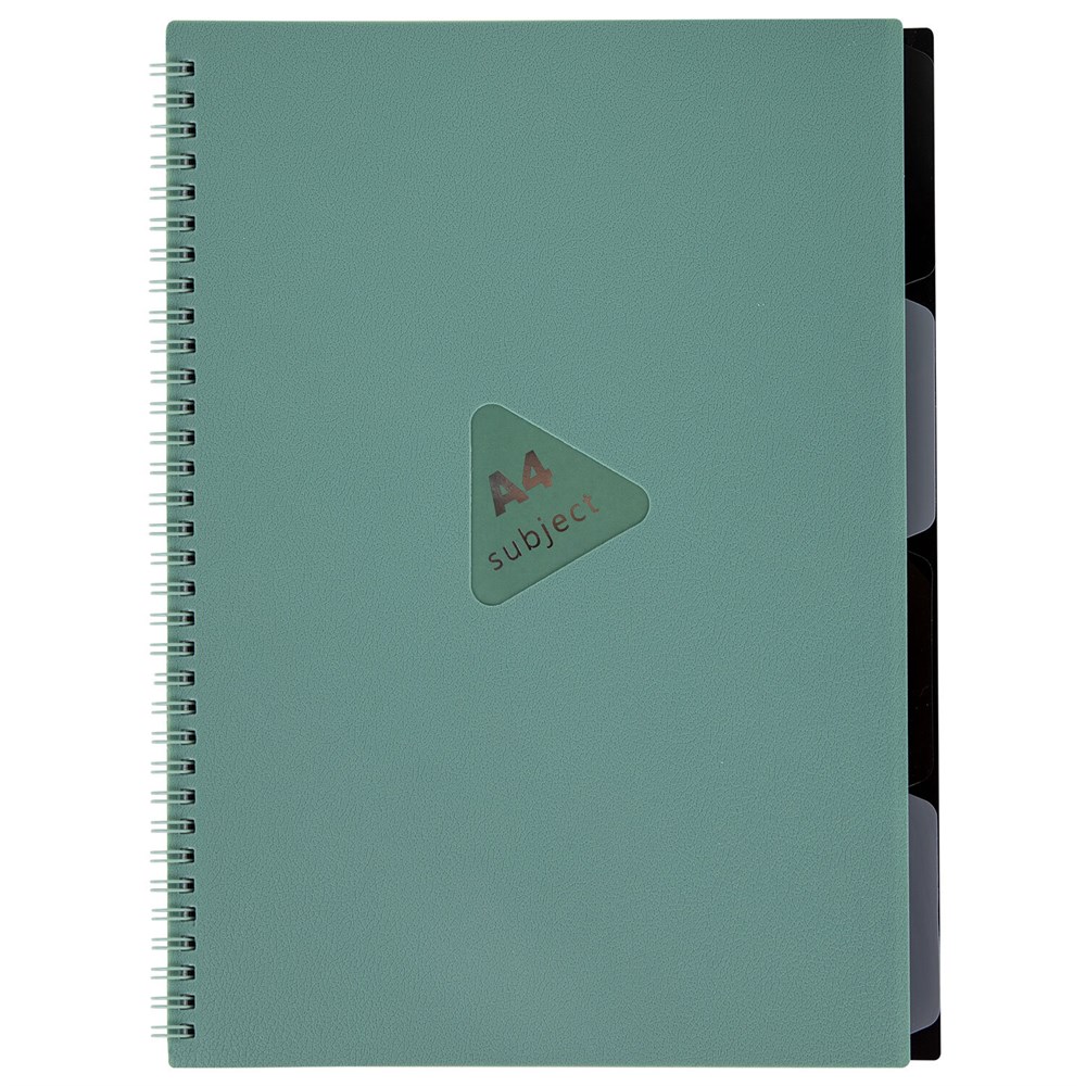 Тетрадь обложка пластик, А4 80 л., гребень, 4 разделителя, клетка, BRAUBERG, зеленый, 405363