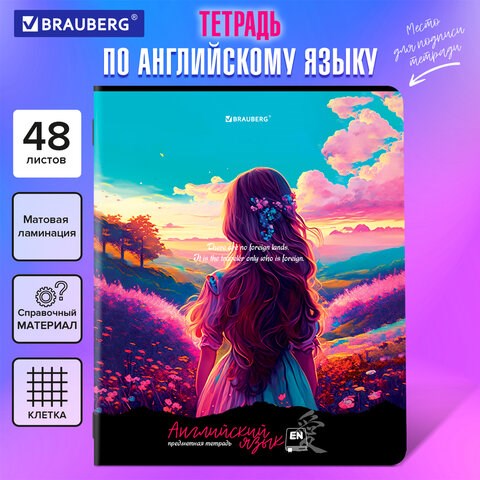 Тетрадь предметная "ANIME GIRLS" 48 л., матовая ламинация, АНГЛИЙСКИЙ ЯЗЫК, клетка, подсказ, BRAUBERG, 404748