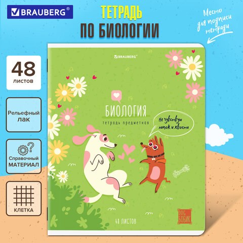 Тетрадь предметная DOG БОБИК 48 л., TWIN-лак, БИОЛОГИЯ, клетка, подсказ, BRAUBERG, 404785