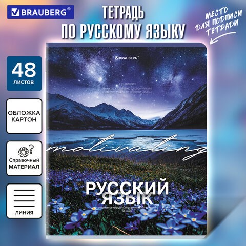 Тетрадь предметная КЛАССИКА ПРИРОДА 48 л., обложка картон, РУССКИЙ ЯЗЫК, линия, подсказ, BRAUBERG, 405091