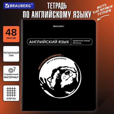 Тетрадь предметная МЕМЫ 48 л., TWIN-лак, АНГЛИЙСКИЙ ЯЗЫК, клетка, подсказ, BRAUBERG, 405098