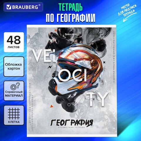 Тетрадь предметная SPORT CLUB 48 л., обложка картон, ГЕОГРАФИЯ, клетка, подсказ, BRAUBERG, 404798