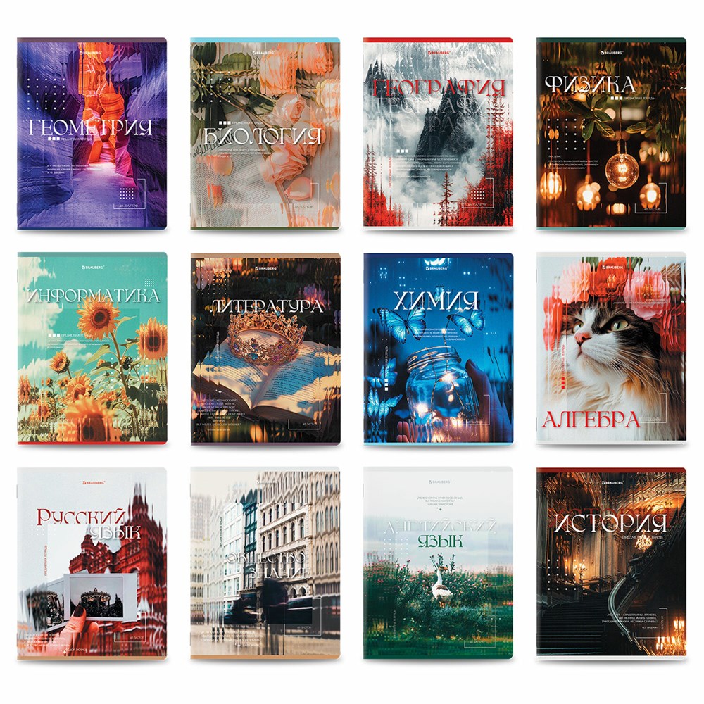 Тетради предметные, КОМПЛЕКТ 12 ПРЕДМЕТОВ, 48 л., глянцевый УФ-лак, BRAUBERG "ILLUSION", 405171