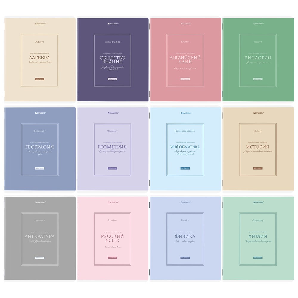 Предметные тетради BRAUBERG из серии "CLASSIC" со справочным материалом предназначены для учащихся средних и старших классов.В комплекте 12 тетрадей: Алгебра, Английский язык, Биология, География, Геометрия, Обществознание, История, Информатика, Литература (в линию), Русский язык (в линию), Физика, Химия.