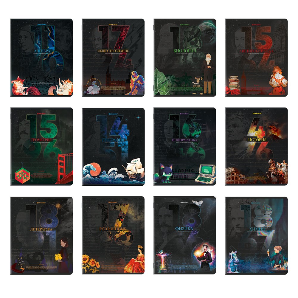 Тетради предметные, КОМПЛЕКТ 12 ПРЕДМЕТОВ, 48 л., TWIN лак, BRAUBERG "ДАТЫ", 405173