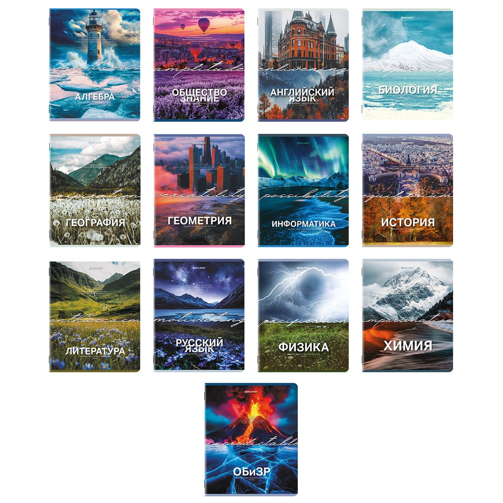 Тетради предметные, КОМПЛЕКТ 13 ПРЕДМЕТОВ, 48 л., обложка картон, BRAUBERG "КЛАССИКА ПРИРОДА", 405165