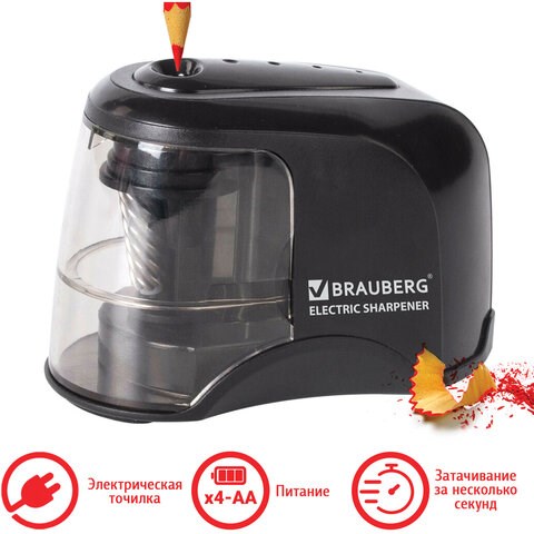 Точилка электрическая BRAUBERG "Metropolis", питание от 4 батареек АА, спиралевидное лезвие, 228426
