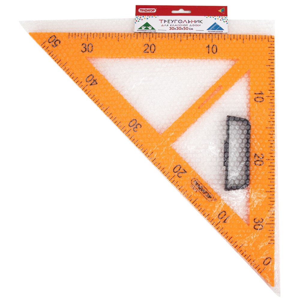 Треугольник прямоугольный для классной доски, пластиковый 30х30х50 см, с держателем, ПИФАГОР, 210875