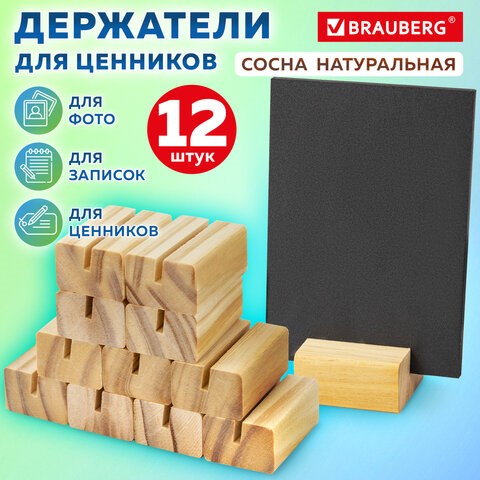 Ценникодержатель деревянный (ценники, реклама, фото) 4х3х2 см, КОМПЛЕКТ 12 шт., BRAUBERG, 291312
