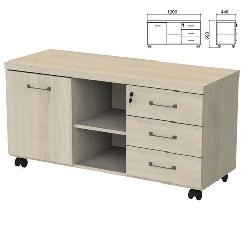 Тумба-креденция "Приоритет" 1200х446х600 мм, дверь, 3 ящика