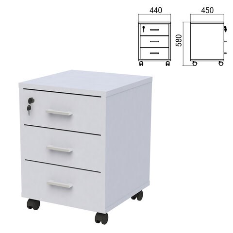 Тумба подкатная Арго, 440х450х580 мм, 3 ящика, замок, серый