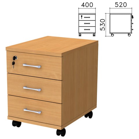 Тумба подкатная предназначена для хранения канцелярских принадлежностей и документов. Оборудована 3 ящиками на роликовых направляющих. Наличие колесных опор обеспечивает легкий доступ и возможность удобного размещения тумбы под письменным столом.