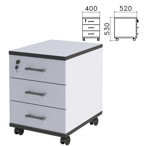 Тумба подкатная "Монолит" (ш400*г520*в530 мм), 3 ящика,