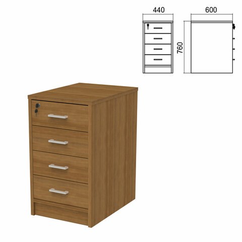 Тумба приставная "Арго", 440х600х760 мм, 4 ящика, замок,