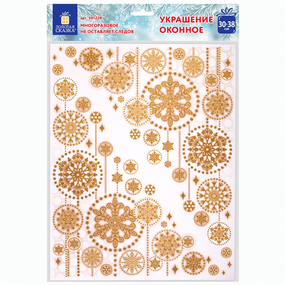 Украшение для окон и стекла ЗОЛОТАЯ СКАЗКА "Узоры из золотых снежинок 2", 30х38 см, ПВХ, 591228