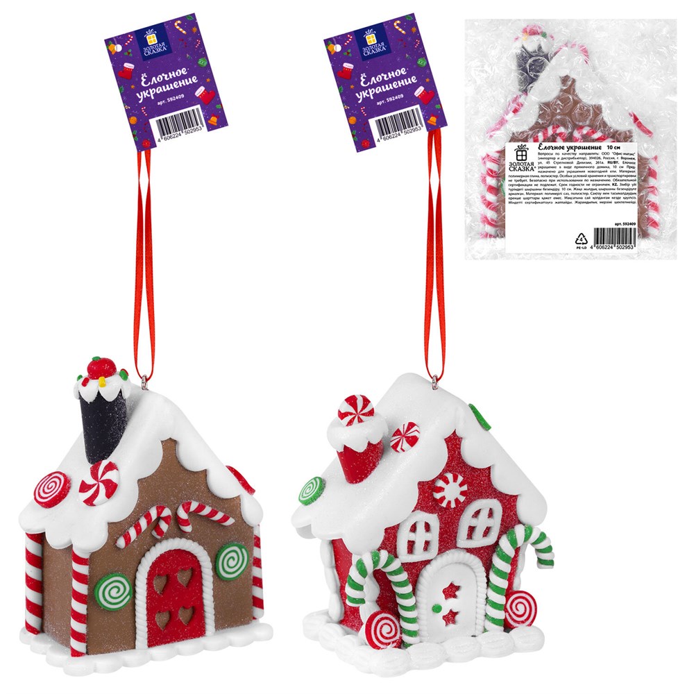 Украшение елочное (1 шт.) "Пряничный домик", 9х10 см, полимерная глина, ассорти, ЗОЛОТАЯ СКАЗКА, 592409