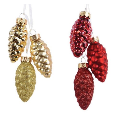 Украшение елочное подвесное из стекла, Шишки 3 шт. 2,5х6х2,5 см, золото/красный в шоу-боксе, 93967