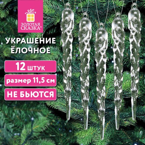 Украшение ёлочное Сосульки акриловые, 12 шт., 11,5 см, ПВХ-бокс, ЗОЛОТАЯ СКАЗКА, 592147