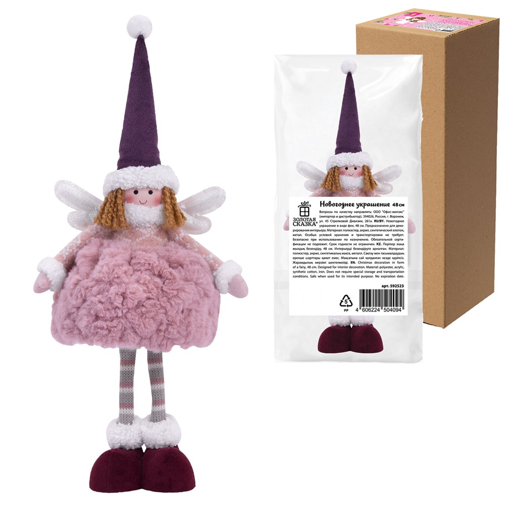 Украшение новогоднее интерьерное 48 см "Фея", полиэстер, нежно-розовый, ЗОЛОТАЯ СКАЗКА, 592523