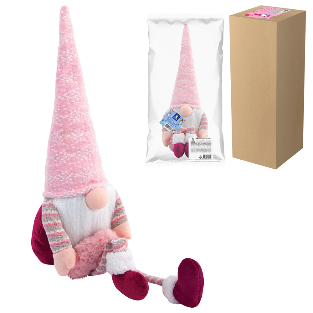 Гном упакован в пакет с клеевым краем и в гофрокороб. Материал – полиэстер, полипропиленовый хлопок, песок. Размер – 70 см.