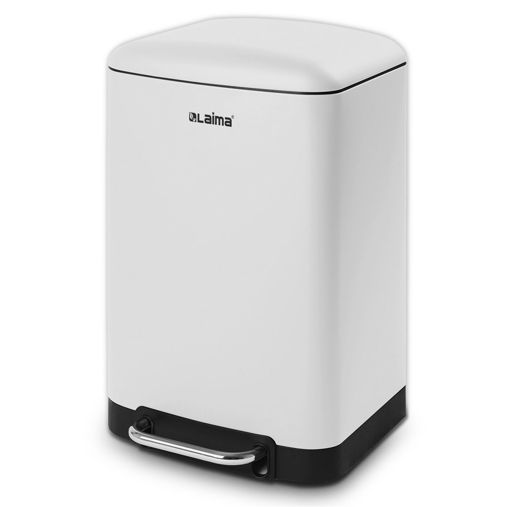 Ведро мусорное с педалью 12 л, крышка с доводчиком, белое матовое, металл, LAIMA ULTRA, 701566