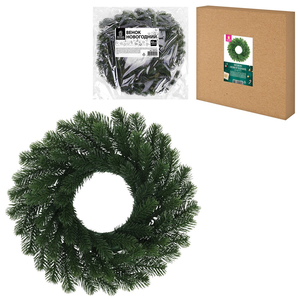 Венок новогодний, диаметр 42 см "Волшебство", литой ПЭТ, ЗОЛОТАЯ СКАЗКА, 592516
