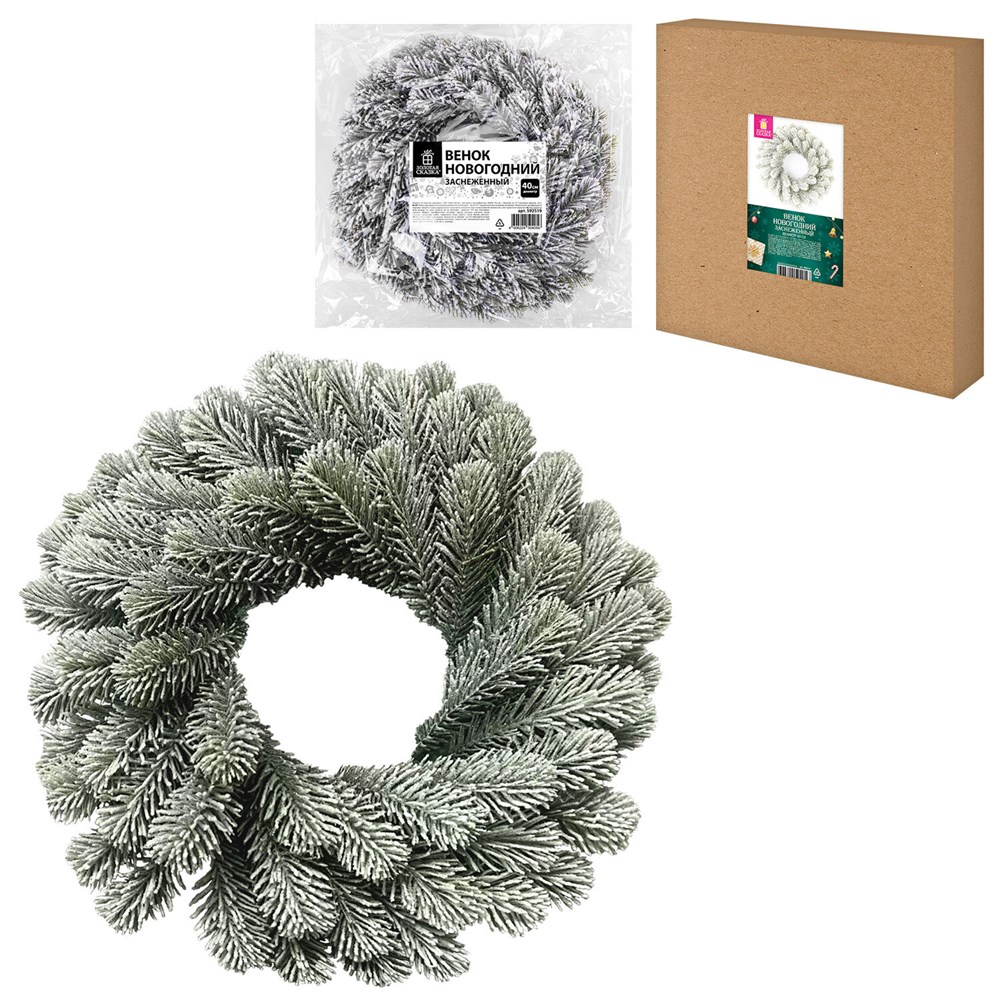 Венок новогодний заснеженный, диаметр 40 см "Снежная зима", литой ПЭТ, ЗОЛОТАЯ СКАЗКА, 592519