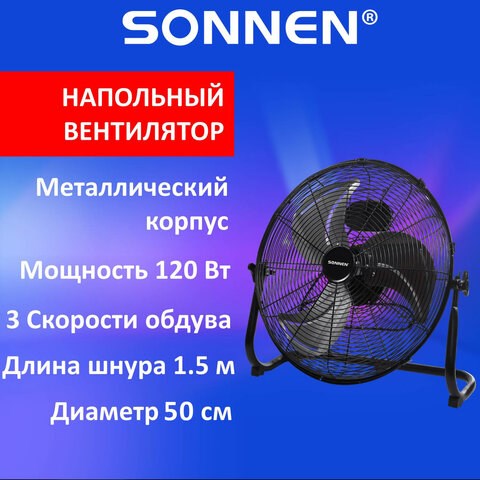 Вентилятор напольный ПОВЫШЕННОЙ МОЩНОСТИ SONNEN FE-45A, d=45 см, 120 Вт, 3 скорости, черный, 455734