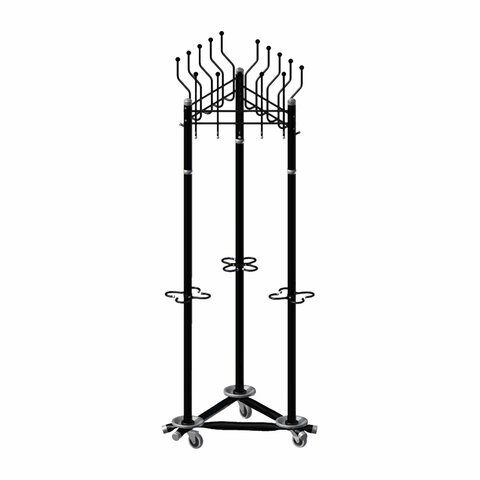 Вешалка на колесах на 15 крючков с держателем для зонтов "Гардикс-3К", металл, черная