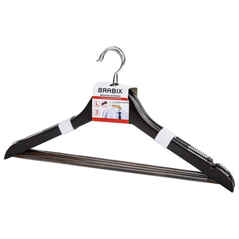 )Вешалки-плечики BRABIX с перекладиной для одежды и антискользящими плечиками с рифленой силиконовой поверхностью, которая исключает сползание одежды. Выполнены из качественной древесины благородного темного окраса. Стильные и очень удобные.