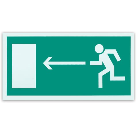 Знак Е-04 эвакуационный "Направление к эвакуацион.выходу налево",300*150мм,самокл,фотолюм.