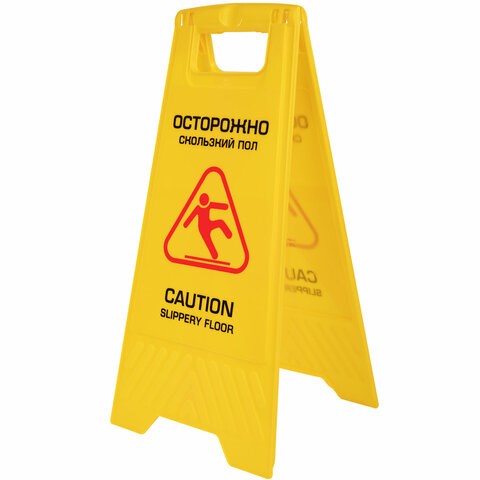 )Знак предупреждающий «Осторожно! Скользкий пол!» LAIMA PROFESSIONAL предназначен для привлечения внимания и обеспечения безопасности в местах массового скопления людей. Выставляется при проведении влажной уборки.