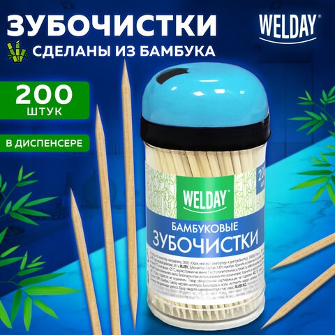 Прочные бамбуковые зубочистки WELDAY в диспенсере являются отличным выбором для заведений общественного питания.